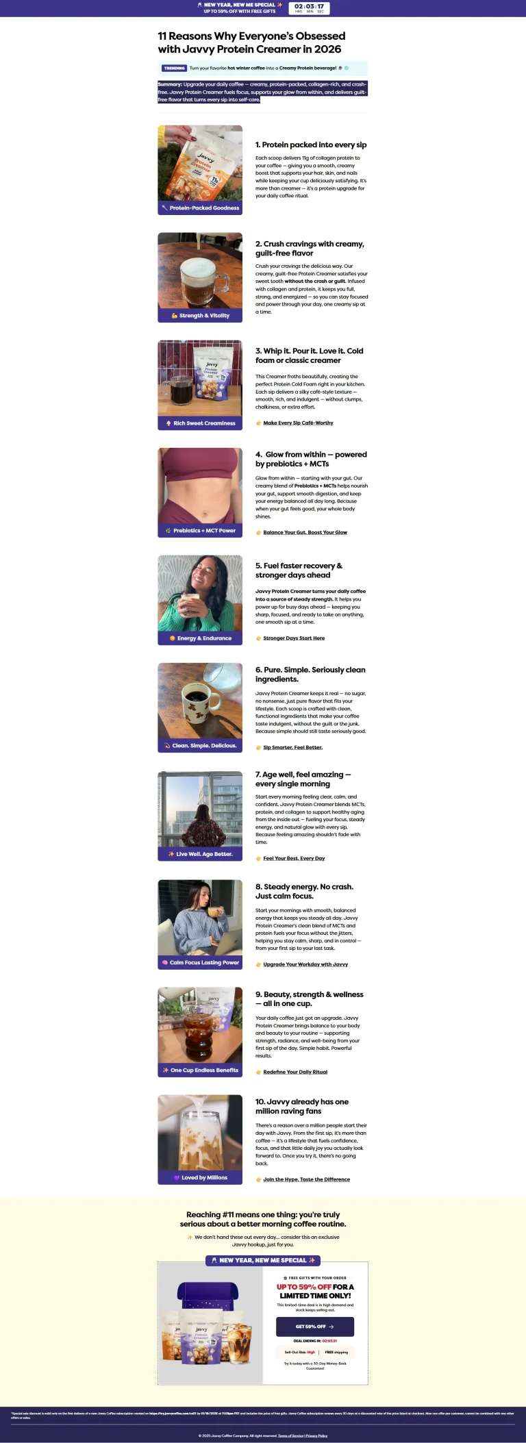 Summary: Upgrade your daily coffee — creamy, protein-packed, collagen-rich, and crash-free. Javvy Protein Creamer fuels focus, supports your glow from within, and delivers guilt-free flavor that turns every sip into self-care.