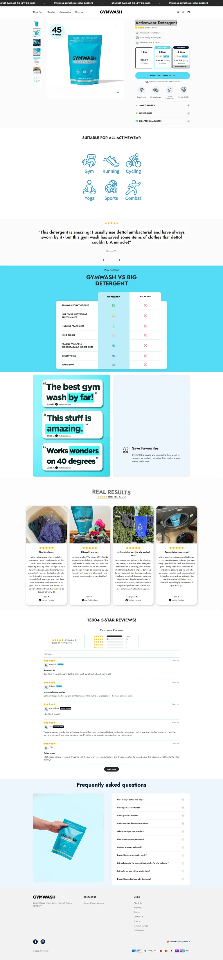“This detergent is amazing! I usually use dettol antibacterial and have always sworn by it – but this gym wash has saved some items of clothes that dettol couldn’t. A miracle!”